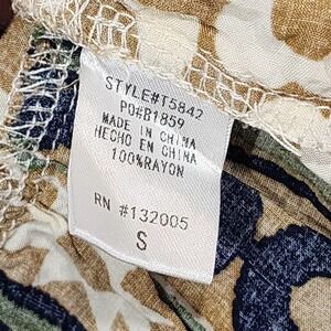 Evokes bohemian charm with this peasant-style top, perfect for adding a touch of whimsy to your wardrobe. The vibrant, patterned design, featuring a mix of earthy tones and playful motifs, exudes a free-spirited vibe. Notable features include a flattering ruffle trim at the hem, a delicate tasseled tie at the neckline, and unique grommet detailing around the collar. Pair with your favorite jeans for a casual daytime look or dress it up with a skirt for a relaxed evening gathering. Ideal for weekend brunches, outdoor festivals, or simply lounging in style.