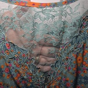 Natual Life Piper Mini Dress Teal Floral Gypsy Lace Hippie Tiered Boho Size XL