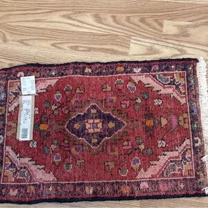small handwoven wool rug featuring a classic Persian Darjazin design with rich red, navy, ivory, and multicolor detailing. Perfect as an accent rug, entryway rug, bedside rug, or decorative wall textile.