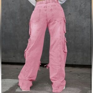 NEW Pink Distressed Denim Cargo Jeans