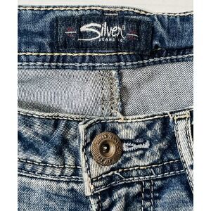 The Vintage Silver Jeans Women's 28 x 25 in Blue Suki Skinny Crop Y2K Distressed Western are a stylish addition to any wardrobe. Featuring a distressed metal theme, these jeans have a vintage appeal with a modern twist. Made by Silver Jeans, these regular fit jeans are designed for women with a 28-inch waist and a 25-inch inseam. The skinny style and zip closure make them a trendy and versatile choice for everyday wear.