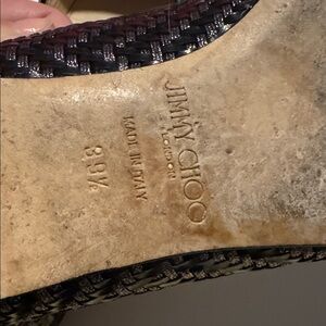 Jimmy Choo Aza Woven Leather Metallic Threaded Black Heels size 39.5. 9.5