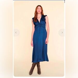 Xirena Silk Satin ruffled "Posey" sleeveless blue dress ruffled Midi size XS