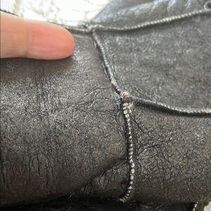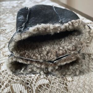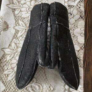 Unisex Black Crackled Leather Soft Sheepskin Winter Mittens