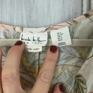 NICOLE MILLER butter yellow petal pink Floral 100% Linen dress flutter sleeve S