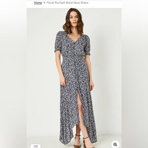 Hayden Los Angeles Floral Ruched Waist Maxi Dress High Low sz S CottageCore