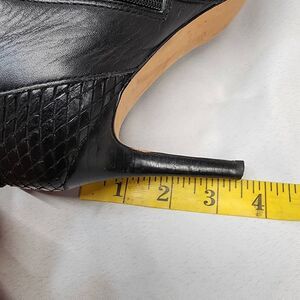 Ann Taylor Black Leather Ankle Boots 8.5M Snakeskin Embossed Buckle Heels