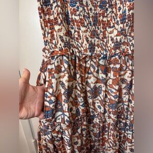 Love the Label Floral Paisley Smocked Tiered Ruffle Orange Blue Maxi Dress M