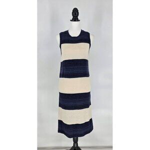 Super soft and stretchy sweater dress. Ivory and navy wide stripes. Cotton and linen blend. MSRP $195