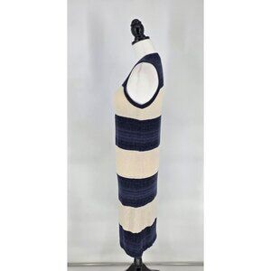 Ralph Lauren Cotton Linen Navy Striped Bodycon Sweater Dress Womens Sz Small