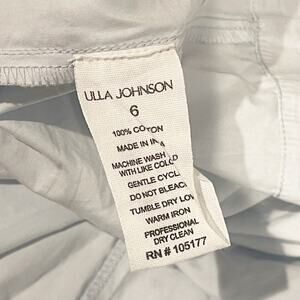 Ulla Johnson "Mae" pleated mini dress with a belted waist V neckline; self-ties Short flutter sleeves Fit-and-flare silhouette Hem falls above the knee Back keyhole closure Cotton Dry clean Imported