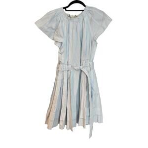 Ulla Johnson Mae Mini Dress Sea Glass Poplin Babydoll Pleated Women's Size 6