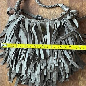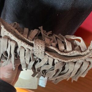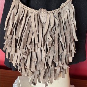 Stylish crossbody with fringe detail. Ideal for everyday wear. This bag is in excellent condition! I really see no wear on the bag except some exposed glue that is shown in the pictures. The inside has one zipper pocket and a clasp to attach your keys. I only use this a handful of times on special occasions. This is an amazing bag and great quality! As always, smoke and pet free home. Same day shipping! Willing to negotiate prices
