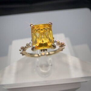 Yellow Radiant Cut CZ Ring Gold-Plated Brass Size 7