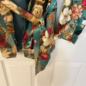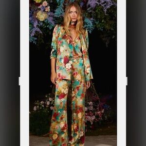 New with tag. Everly Silk Floral Belted Robe Blazer. Gorgeous floral silk Rococo print L'Agence belted blazer. Shawl collar. Gorgeous blooms in a vibrant color palette invigorate this blazer that's defined by a slender waist tie and cut from shiny silk.