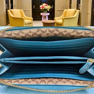 COACH Logo Teal Accordion Zip Long Wallet w/ Front Pocket