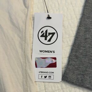 Stylish women's shirt by 47. Features a white body with gray accents. Ideal for everyday wear.