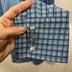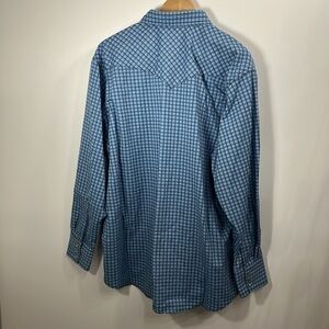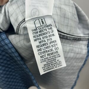 Wrangler Men’s Blue Flame Resistant CAT 2 Authentic Western Work Shirt Pearl snap size XXL – REG. NWT. Length is 30” and Chest is 28.5”