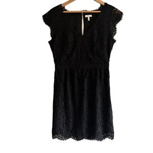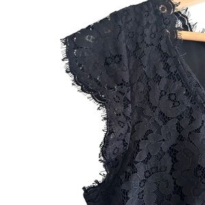 Joie Lebanon Black V-Neck Eyelash Sleeveless Women's Cocktail Lace Dress Size M