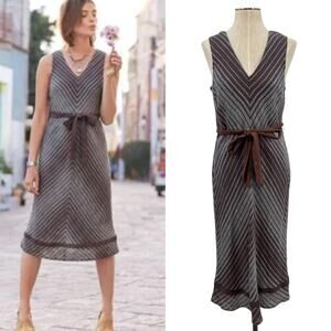 Sundance Allende Bias-cut Belted Dress Striped Linen Brown Gray Petite Size 10P