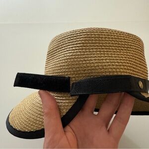 Eric Javits Squishee cap in natural/black. Excellent condition, only worn a few times. Comfortable fit, UPF+ 50, adjustable strap in back, detachable forehead pad, grosgrain ribbion trim. Brim span 3.75”. Stock photos included to help show fit.
