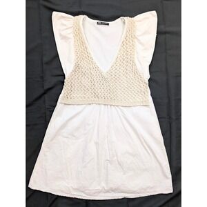 Zara White & Beige Open Crochet Faux Vest Tunic Dress Women's Size Small