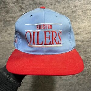 Vintage 90s Houston Oilers Snapback Hat Annco NFL Embroidered Logo Script Sportswear Adjustable Cap Blue Red - NEW W/ TAGS