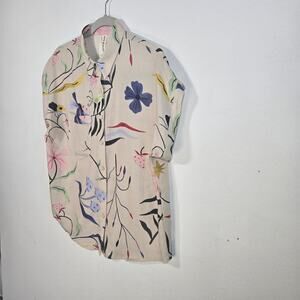 Eve Gravel Caterpillar Garden Design Hades Women's Shirt. Print In Collaboration With Estee Preda; An Artist That Lives In A Forest In Canada. Size Medium. Short Sleeve. 55 % Viscose, 30% Cotton, 15% Linen Blend. Button Placket And Patch pocket At The Front. Oversized For An Airy Comfy Fit. Measurements Pit To Pit 22 Inches; Length 23 Inches