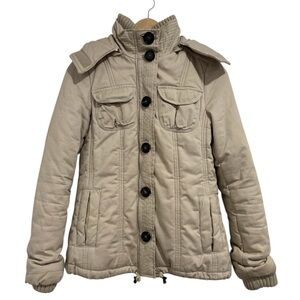 ZARA Basic Beige Padded Utility Jacket | Button & Zip Front | Women’s Medium