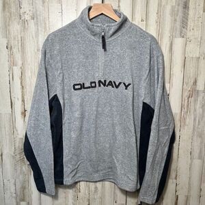 Vintage Y2K Old Navy Embroidered Fleece Quarter Zip Sweater Gray Mens Medium