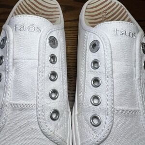 Taos Ez Soul White Canvas Slip On Sneaker Slides Womens Size US 8