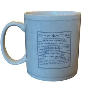 Enjoy your favorite beverage with this elegant New York Skyline Starbucks Mug. Featuring a detailed blue cityscape on a white background, it's perfect for any home dining collection. Does have a couple of small spots and a chip (pictured and discounted). Large enough for a cup to wake you up. Your satisfaction is very important to me, please let me know if you have any questions before purchasing. Thank you for visiting my listing and Happy Shopping!