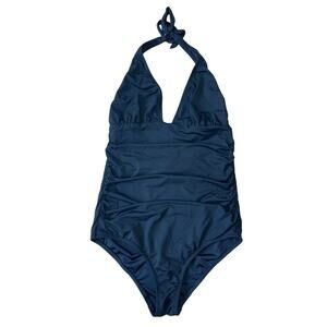 Shoshanna Black Halter One Piece Swimsuit Ruched Classic Flattering Fit - Size 6