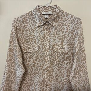 Coolibar Women's UPF 50+ Tab-Sleeve Button-Front Tunic Shirt Top M Khaki Print