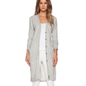 Standard James Perse Women's Size 3 Grey Striped Cardigan Cotton Fleece Long L