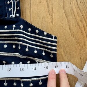 Worn one time for an event. A couple of spots of the white embroidery is slightly loose but it honestly arrived like that and is not at all noticeable.