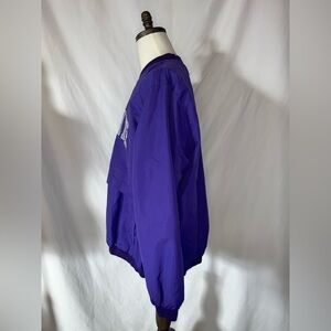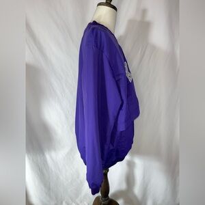 The Franchise Club Kansas State Wildcats Men's Vintage Windbreaker Pullover in 2XL is a stylish and sporty jacket perfect for fans of the NCAA team. Made of polyester, this purple windbreaker features a V-neck design and is ideal for various activities like tailgating, basketball games, or casual outings. With a 90s vibe and a focus on university-themed activewear, this jacket combines comfort with a touch of nostalgia for those who love the sporty look.