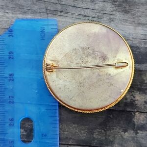 gorgeous large made in Italy vintage gold tone brooch with a micromosaic floral design. each tiny tile is individually placed by skilled Italian artisans.