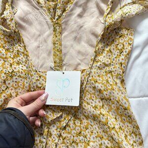NWT Womens Size 6 Yellow Floral Mini Dress Off Shoulders Sundress Summer Travel