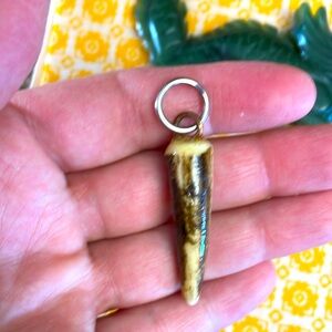 (1) authentic Tibetan Jadeite Gem hand crafted horn shape pendant (approx. 1.25” long)