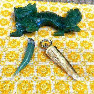 Dragon figure and horn pendants.