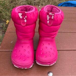 Kids Cros Fuzzy Insulated Pink Winter Boots