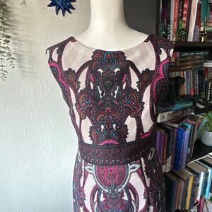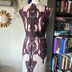 Sandra Darren Size 6 Beige multicolor paisley print sheath dress