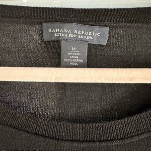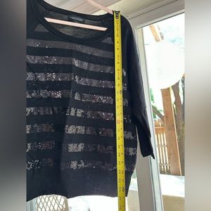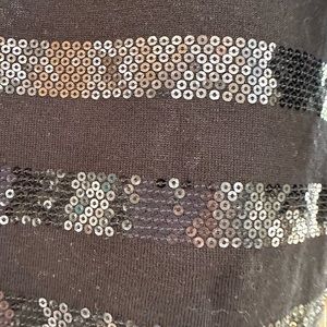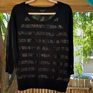 Banana Republic Sequined Striped Merino Wool 3/4 Sleeve Black Sweater Medium