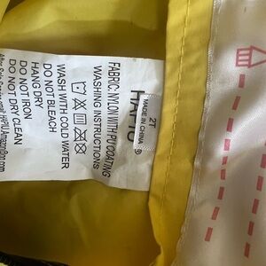 Cheerful yellow rain suit with stirrups. Lightweight and great for outdoor adventures!