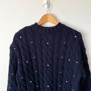 Zara Rhinestone Embellished Fuzzy Knit Sweater Dress Navy Blue Size Small