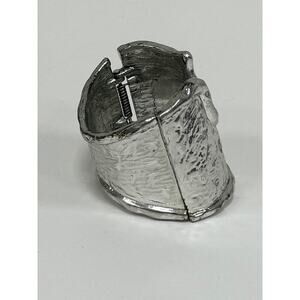 This is a beautiful silver hinged cuff bracelet. It is in excellent condition and would make a great addition to any jewelry collection. The bracelet is made of high-quality silver and is very durable. It is also very comfortable to wear. This bracelet is perfect for any occasion, whether you are dressing up for a special event or just want to add a touch of elegance to your everyday look. Don't miss out on this opportunity to own a timeless piece of jewelry. Grab it now!