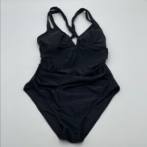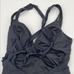 CUPSHE Black Plunge Ruching Paneling Cross Tie Back One-Piece Swimsuit