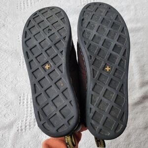 Maelly reinvents the familiar 6-Eye boot shape in a leaner, lighter style and a padded ankle. With a padded collar for added comfort, the Maelly can keep up with you over two days packed with music, mud and moshing. The boot is finished with black metal eyelets, a heel loop, and yellow sidewall thread — giving a nod to the traditional Dr. Martens yellow welt stitch.