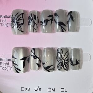 Handmade Floral And Butterfly Gray Press-On Nails